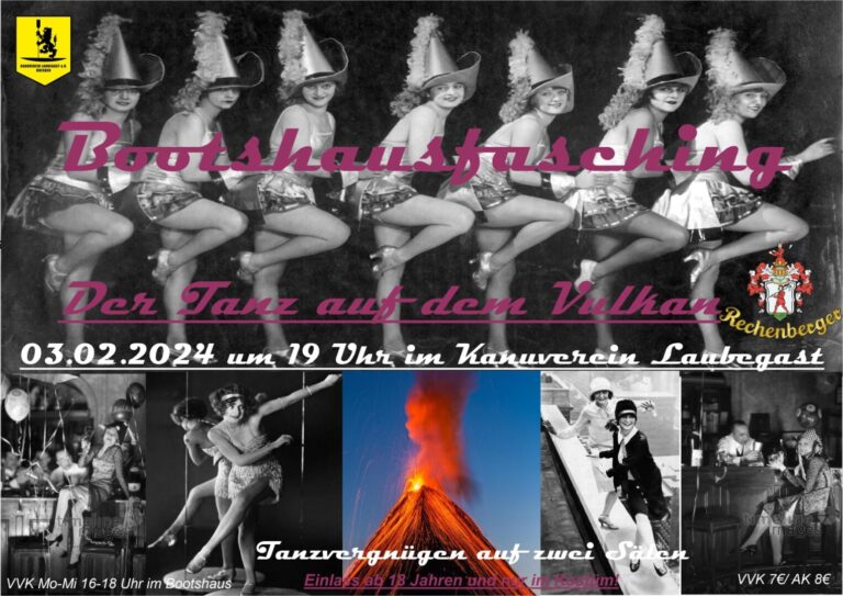 Es ist wieder soweit, unsere legendäre Faschingsfete findet am 3.2.2024 ab 19 Uhr im Bootshaus statt. Als Motto für 2024 wurde “ Der Tanz auf