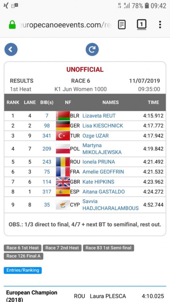 Unsere Teilnehmerin Lisa Marie Kieschnick hatte schon am Donnerstag 09:35 Uhr ihren Einsatz und hat sich in einem hervorragenden Vorlauf direkt für das Finale am Samstag 09:14 Uhr qualifiziert. Wir drücken Lisa Marie ganz fest die Daumen und wünschen viel Spaß und Erfolg.