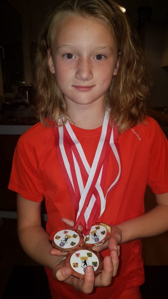 Vor ein paar Wochen hat sich eine unserer „kleinen“ KVL-Sportlerinnen bei den Kanuwettkämpfen in Saaldorf für die diesjährige Olympia-Pokal-Teilnahme qualifiziert. Für den Sächsischen Kanuverband ging Haylie Pacholke mit Sportlern aus verschiedenen Vereinen in den Mannschaftsbooten K4 und K2 in Berlin an den Start, um gemeinsam jeweils die Goldmedaille zu erkämpfen. Im K1 brachte sie die Bronzemedaille mit nach Hause. Eine tolle Leistung!