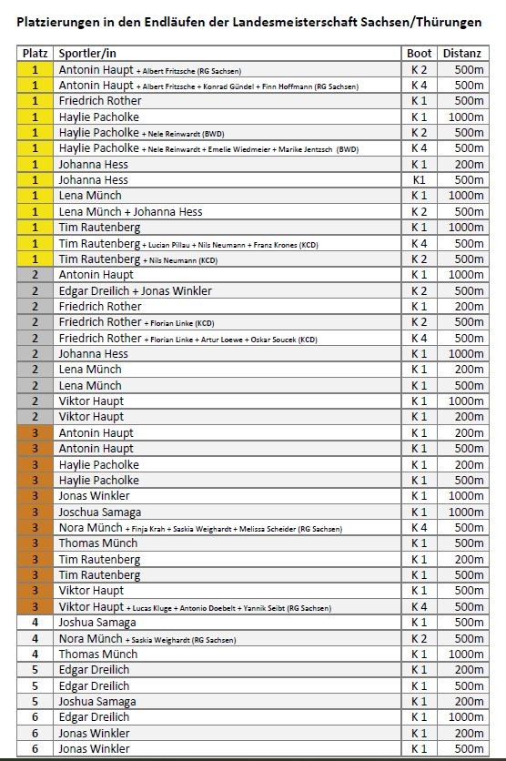 Der zweite Wettkampftag begann 09:00 Uhr mit den Endläufen im Einer-Kajak über 200m, bei denen der KVL 7 Podestplätze einfuhr. Von 11:15 bis 15:45 Uhr fanden die Finalläufe über 500m im K 1, K 2 und K 4 statt. Auch hier haben wir viele gute Platzierungen erreicht und insgesamt 20 Medaillen abgeräumt.