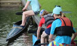 Heute Morgen gab es wie immer Frühstück. Danach ging es zum Zeitfahren, wo jeder sein Können bei 200m, 500m und 1000m beweisen konnte. Im Kanal gab es insgesamt 5 Kenterungen. Danach gab es zum Mittag Bulletten mit Gemüse. Nach dem Mittag hatten wir eine längere Pause gehabt, da wir alle viel zu geschafft waren. Die Seepferdchen haben sich in schwierigere Boote gesetzt und sind zu den Delphinen und Haien aufgestiegen. Nach der Einheit gab es Kuchen und für die Erwachsenen Kaffee. In der dritten Einheit sind die Delphine in Mannschaftsboote gestiegen was auch gut funktionierte. Nach dem Abendbrot durften Groß mit Klein fahren war sehr toll war.