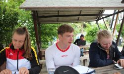 Heute Morgen wurden wir von unserer lieben Zimmermitbewohnerin Haylie geweckt. Als wir 2 Stunden aufs Frühstück gewartet haben, haben wir es umso mehr genossen. Danach ging es auch schon zur ersten Einheit, manche haben auch ihr Glück in der TG Reitzenstein probiert. Die Seepferdchen haben viele neue Boote probiert. Nach ein paar Kenterungen und Fahrten in den Kanälen gab es ein leckeres Mittagessen. Danach war erstmal Freizeit in deren man sich von der Einheit erholen konnte und neue Kraft schöpfte. Dann ging es zur zweiten Einheit, in deren man mit neuer Kraft versuchte die Arme hoch zu halten und versuchte die vor ein Fahrenden einzuholen. Zur Belohnung gab es zum Vesper Apfelkuchen und Mohnkuchen. Als wir diesen verputzt haben, ging es zur dritten und letzten Einheit des heutigen Tages. Diese Einheit war besonders lang und sehr anstrengend sodass wir freiwillig zeitig ins Bett gegangen sind.