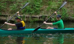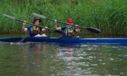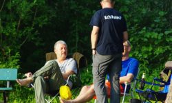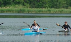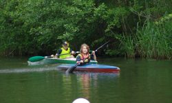Nach einem Trainingstag voller Anstrengung und Sonne hat jeder den Tag nach seine Vorstellungen ausklingen lassen: es gab ein Lagerfeuer oder auch ein Volleyballturnier und als Höhepunkt am letzten Abend das Spaßpaddeln, wo die kleinen ihre einmalige Chance nutzen konnten, sich zusammen mit den großen in ein Boot zu setzen und eine kleine runde zu Paddeln.