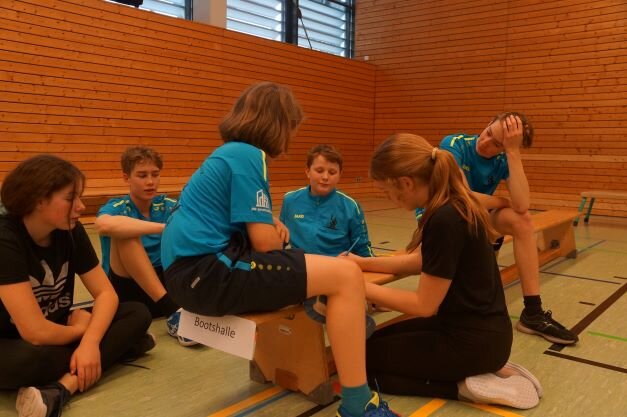 Spielerisch wurde das letzte Jahr noch einmal ausgewertet: Die 18 Teilnehmer bildeten drei Mannschaften, die gegeneinander antraten und Fragen zum Verhalten auf dem Wasser sowie zu Wettkämpfen und Veranstaltungen aus 2022 beantworten mussten. Auch kreative Aufgaben waren zu meistern: So sollten die Grundrisse der Vereinsräume skizziert oder mit nur zehn Spanngurten die Silhouette des Bootshauses geformt werden.