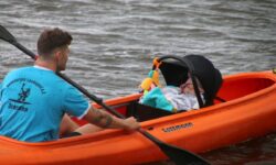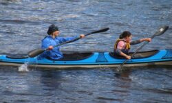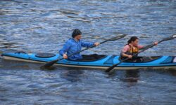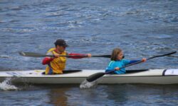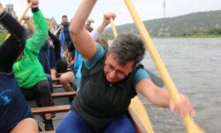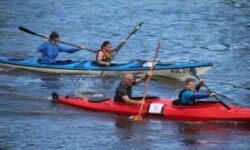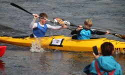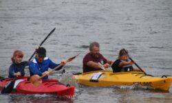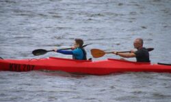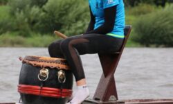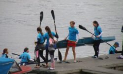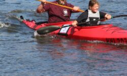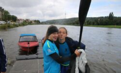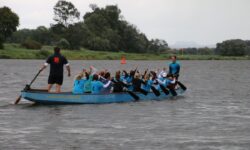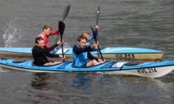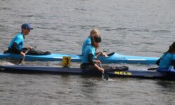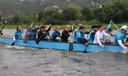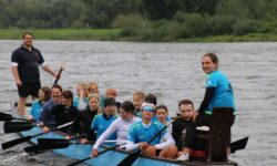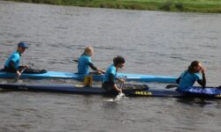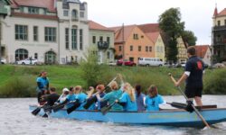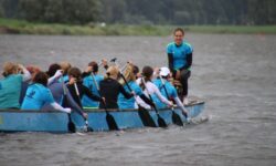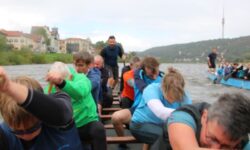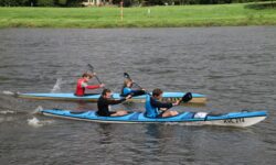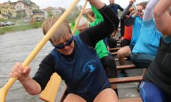 Neu im Wettkampfprogramm war ein Drachenbootwettkampf mit 2 Booten, unsere jungen Sportler nutzten die Möglichkeit, Erfahrungen mit einem Stechpaddel auf der Elbe zu sammeln.